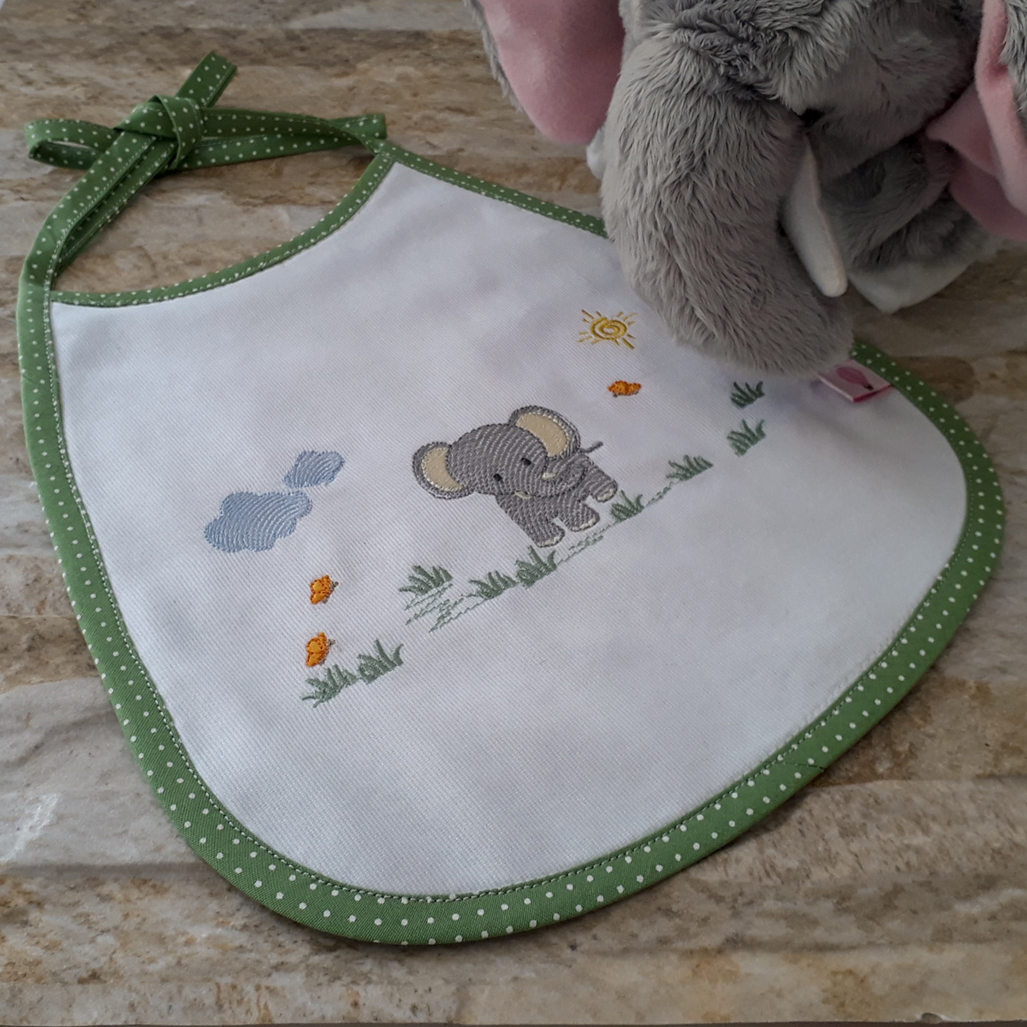 Com a função de proteger a roupa do bebê durante as refeições ou em momentos que possam causar respingos de líquidos ou saliva, o babador é um item funcional que ganha personalização.